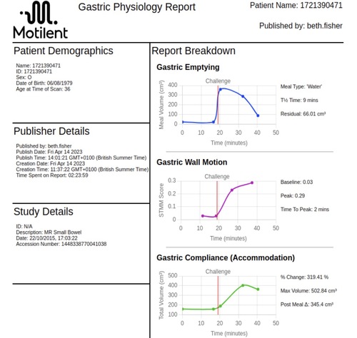 Motilent’s structured reporting service collates multi-timepoint MRI data into a single visual report. This makes advanced physiology assessment practical for clinics, reducing the workload for radiologists while giving referring clinicians clear, actionable insights.
